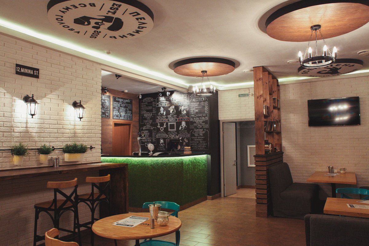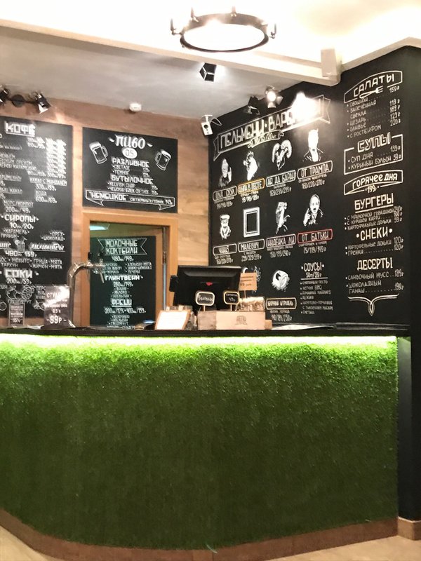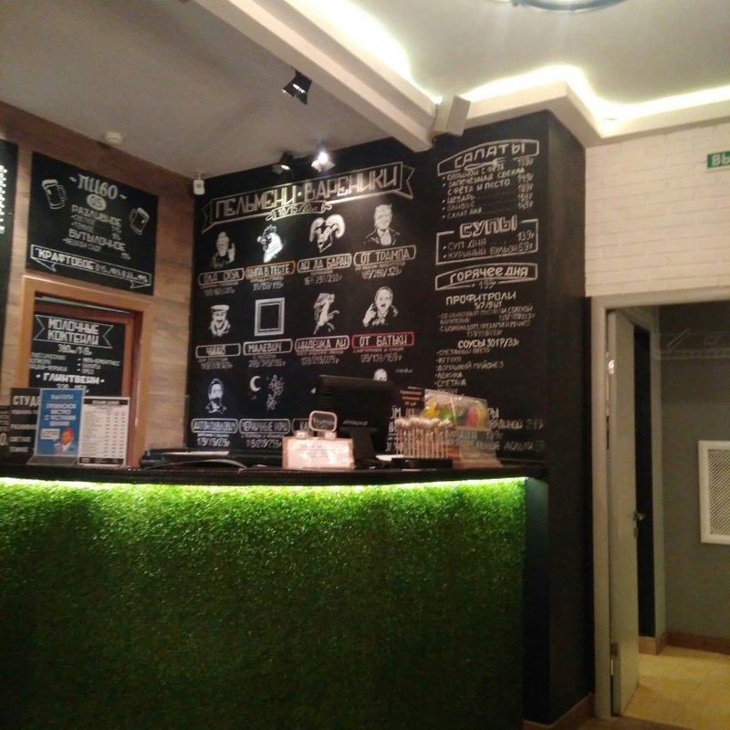 Отличное место, очень хороший дизайн, много интересных фишек, очень вкусные пельмени. Пока ждёшь заказа можно поиграть в морской бой