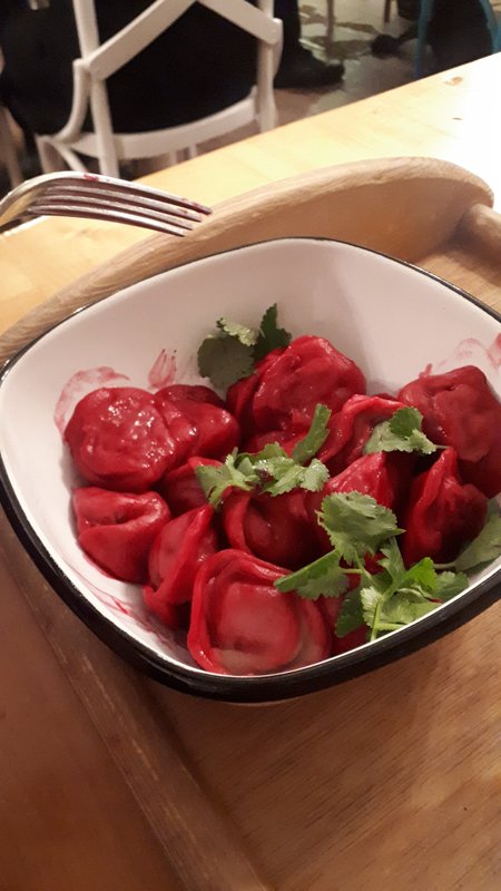 Необычные пельмешки на вид,на вкус ничего особенного.А вот салат с запеченной свеклой и фетой очень понравился)